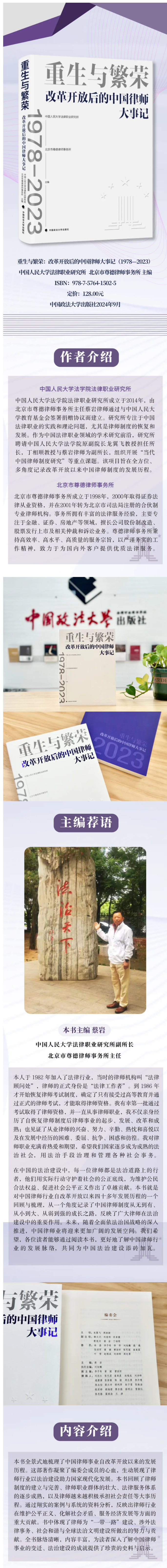 中国政法大学出版社重磅推荐《重生与繁荣:改革开放后的中国律师大事记(1978—2023)》 - 编辑荐书 - 中国高校教材图书网