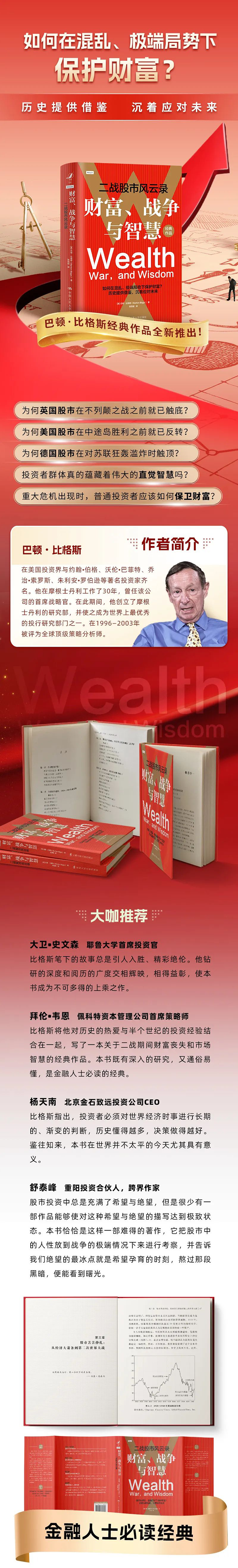 二战的烟云已经消散许久,当时的历史经验已经淹没在图书馆那布满灰尘的书架中。所幸,巴顿·比格斯在他的著作《财富、战争与智慧:二战股市风云录》一书中,又把这段历史清清楚楚的复述出来。