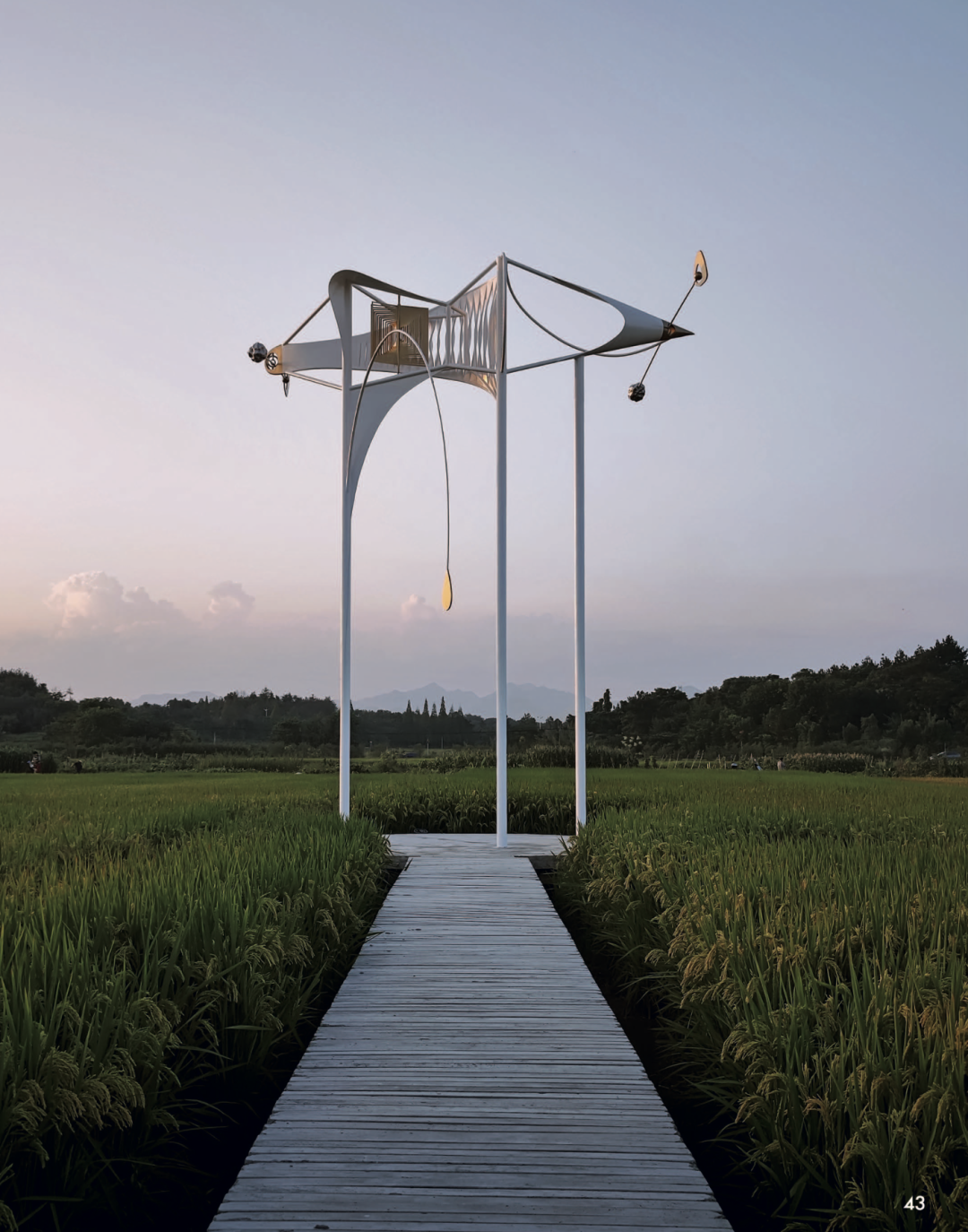 科技与自然的关系也是透过徐戈作品所探讨的深层问题:“科技的不断发展势必会入侵自然,这是不可避免的。而艺术的作用是将这种入侵,或者说是破坏减少,变成一种融入而不是侵入。”正如作品《来自风的信号》——展现出气候与自然的关联,在自然界的平衡与不确定性探索中,艺术的介入如风一般,悄无声息,却又近在咫尺。汪国真曾说:“我不想故作潇洒,只想活得真实。就像无拘无束的风,在时光里轻盈地走,既不是标榜,也没有解释。”从远方而来的风,夹杂着生机与希望,徐戈用自然界中自由自在、没有语言的风,传递着关于生命、关于远方的信号,同时将展出地点放置于田野中,向大众开放,思考气候与自然的关联,引导大众对自然敬畏与关于生命的哲思。