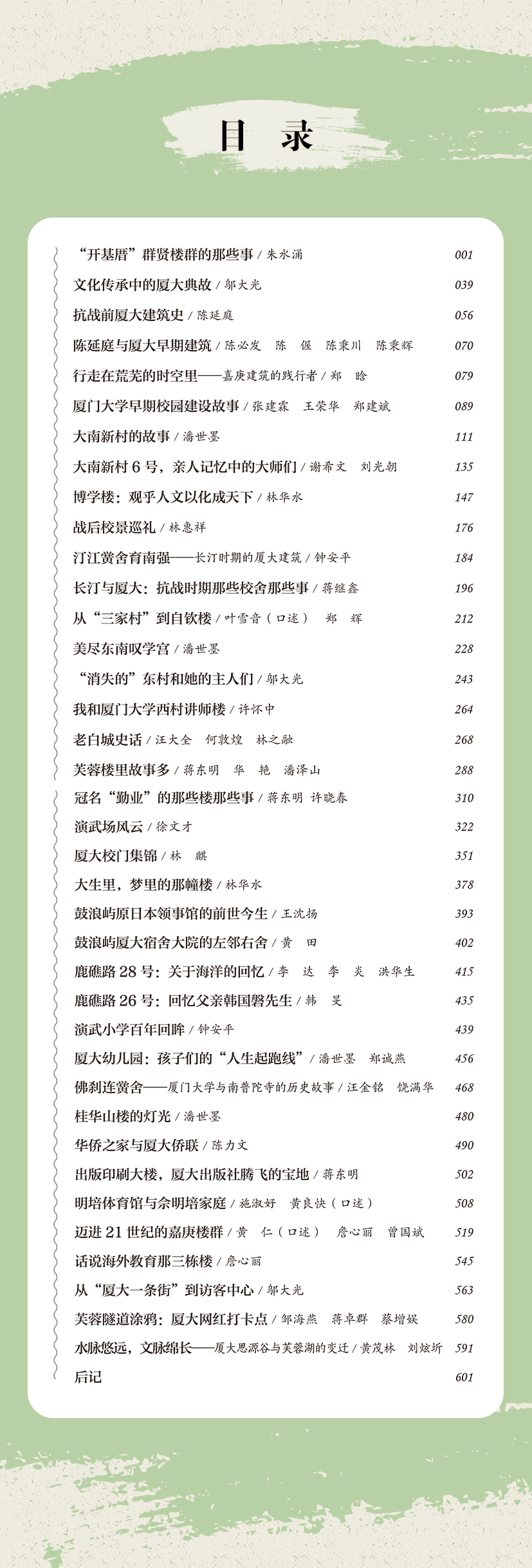 大学要有大楼,要有大师,也离不开众多的默默奉献的普通人。正如昂然挺立的嘉庚建筑,有高耸的石柱,也离不开砖瓦。读者从本书中可以回望那些名扬天下的学术前辈走过来的路,更能倾听到许多默默无闻、甘于奉献的“小人物”内心的声音。