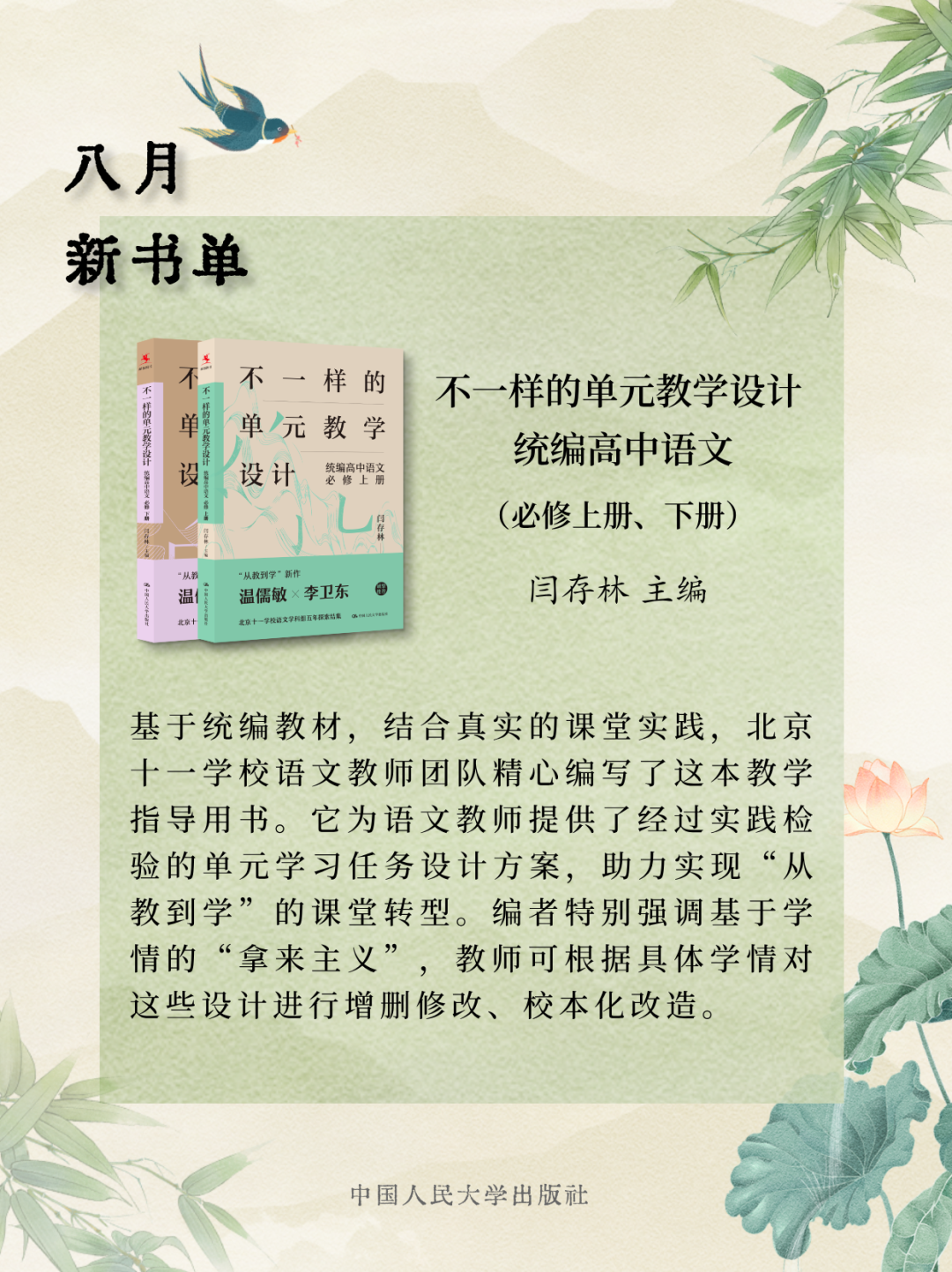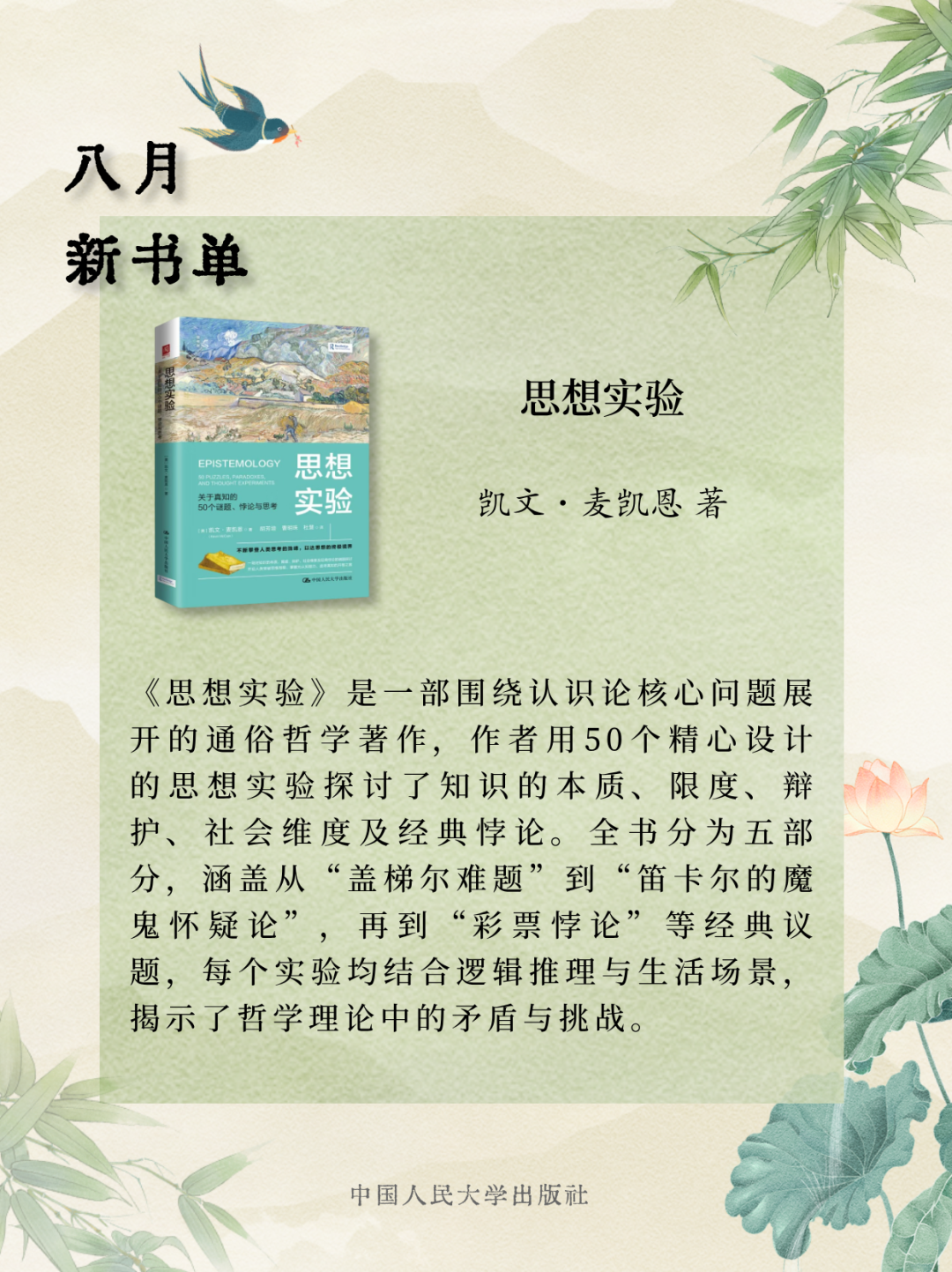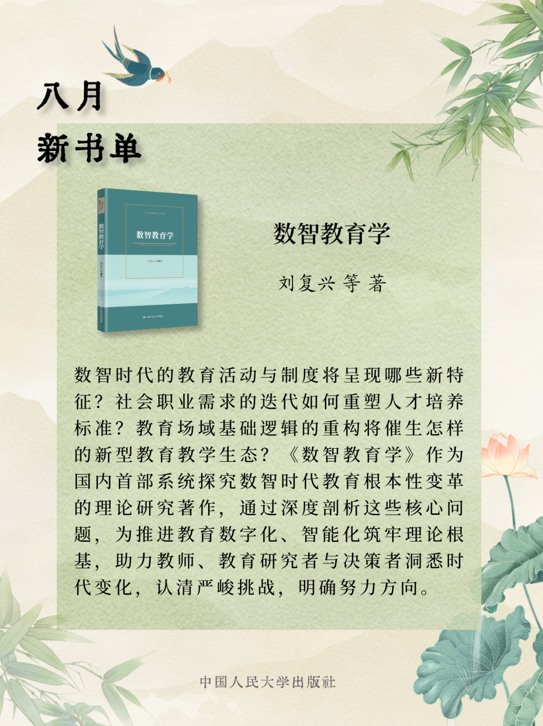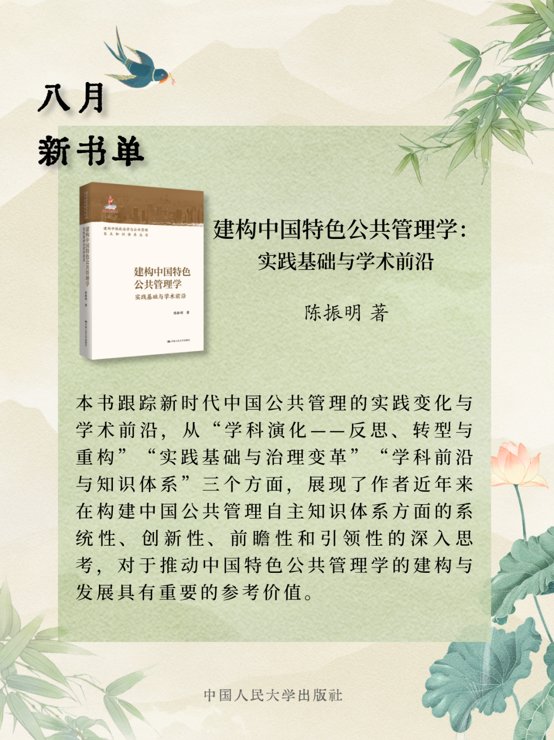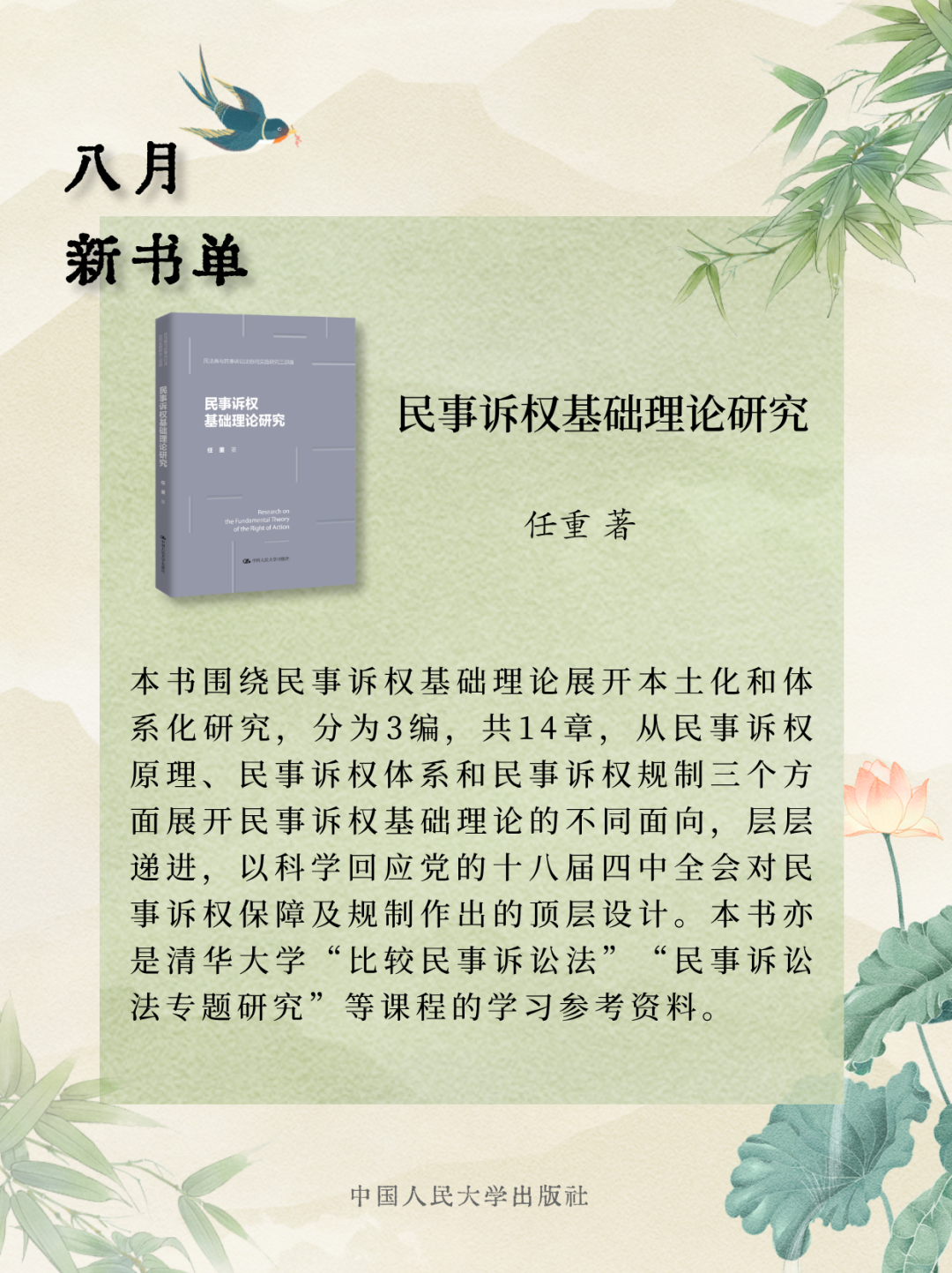 中国人民大学出版社推荐2025年8月新书单,共28种图书,分别为:《怒吼吧,中国:北京鲁迅博物馆藏抗战版画作品集》《坚持问题导向》《吾乡:中国易地扶贫搬迁纪实》《像马克思一样思考》《政治学:美好的学问》《新时代高校思想政治理论课教学案例精选(第1-5辑)》《数智教育学》《建构中国特色公共管理学:实践基础与学术前沿》《治愈世界:医学进步的黄金时代1840—1914》《AI风暴:中美博弈与全球新秩序》《组织战略、结构和过程》《数字营销(第4版)》《民事诉权基础理论研究》《民法典与民事诉讼法的交错》《数字经济法治保障研究:理论基础与法治实践》《合同法研究(第一卷)(第四版)》《合同法研究(第二卷)(第四版)》《如何理解政法:范畴、传统和原理》《行政法的技艺》《税制改革的法治逻辑》《小说家的致富经》《思想实验》《理性思辨:如何在非理性世界里做一个理性思考者》《未挂断的人生:心理援助热线的23次破晓对话》《心理咨询的个案概念化》《我比古人活得好:跨越时空的诊疗启示录》《成为儿童青少年心理治疗师》《不一样的单元教学设计统编高中语文(必修上册、下册)》。天气渐凉,愿这些书陪你告别盛夏,以沉静姿态,迎接秋日丰盈。