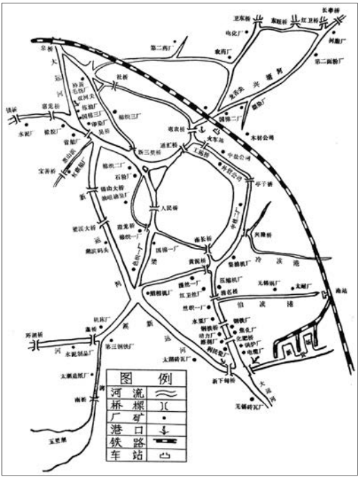 无锡市市区河流示意图(1986)