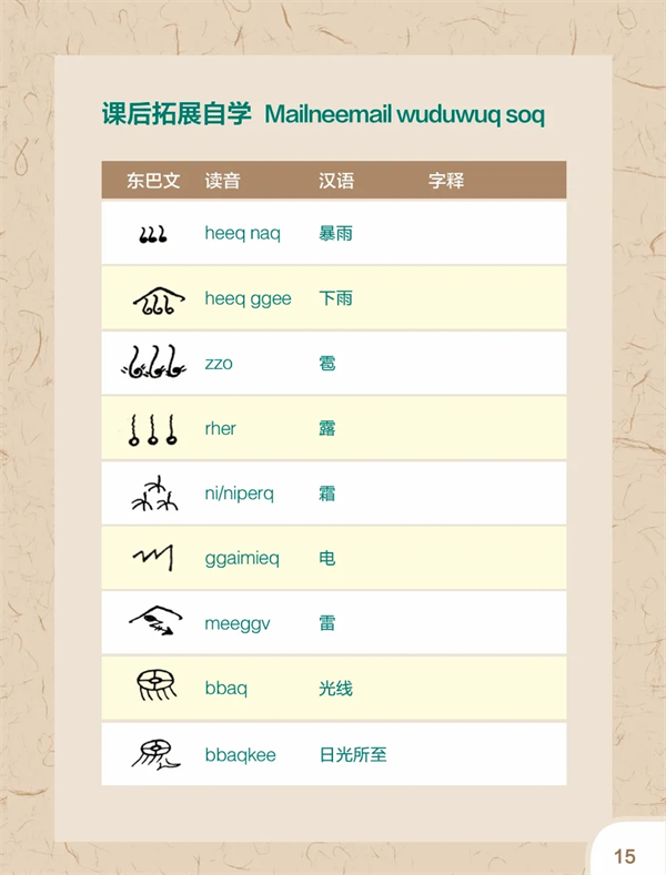 编写团队还将在纳西族聚居地的中小学校推广东巴象形文字的教学活动,构建“线上+线下”立体化传播矩阵。联合教育专家、语言学家及纳西族文化传承人共同开发特色文化课程,将《东巴象形文字初级教程》作为教学辅助材料,通过课堂讲授、文化活动体验等形式,激发学生学习兴趣和对传统文化的认同感;组织试点学校教师培训,培养传承师资队伍,实现文化的可持续传承。