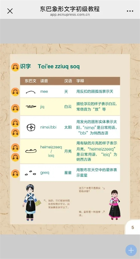 作为面向社会大众的东巴象形文字教材丛书的第一本,《东巴象形文字初级教程》以纸质教材为基础,辅以数字化学习平台和地方特色推广课程,旨在促进纳西族东巴象形文字的保护与传承。