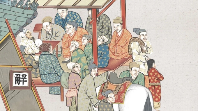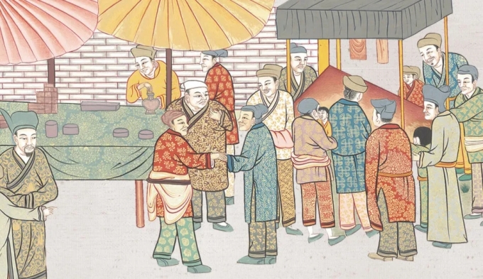 • 人的社会化图像符号:不同身份的人物(官员、商贩、船工)其服饰纹样有何不同设计?行为动态如何兼顾写实与唐卡的仪式感?