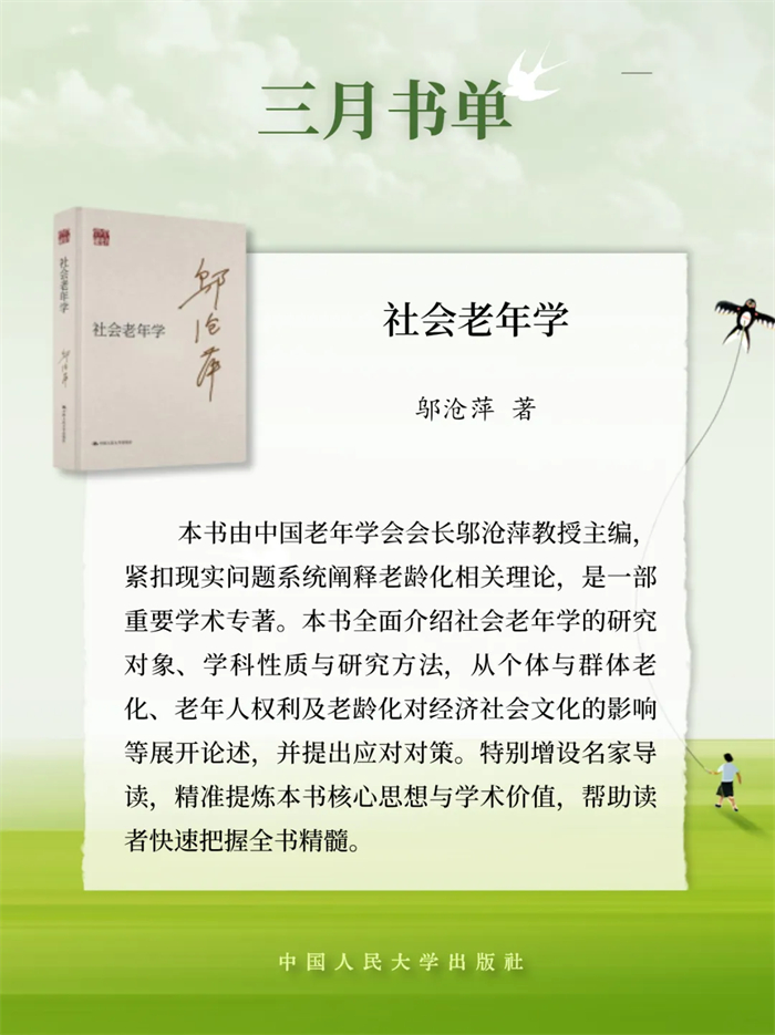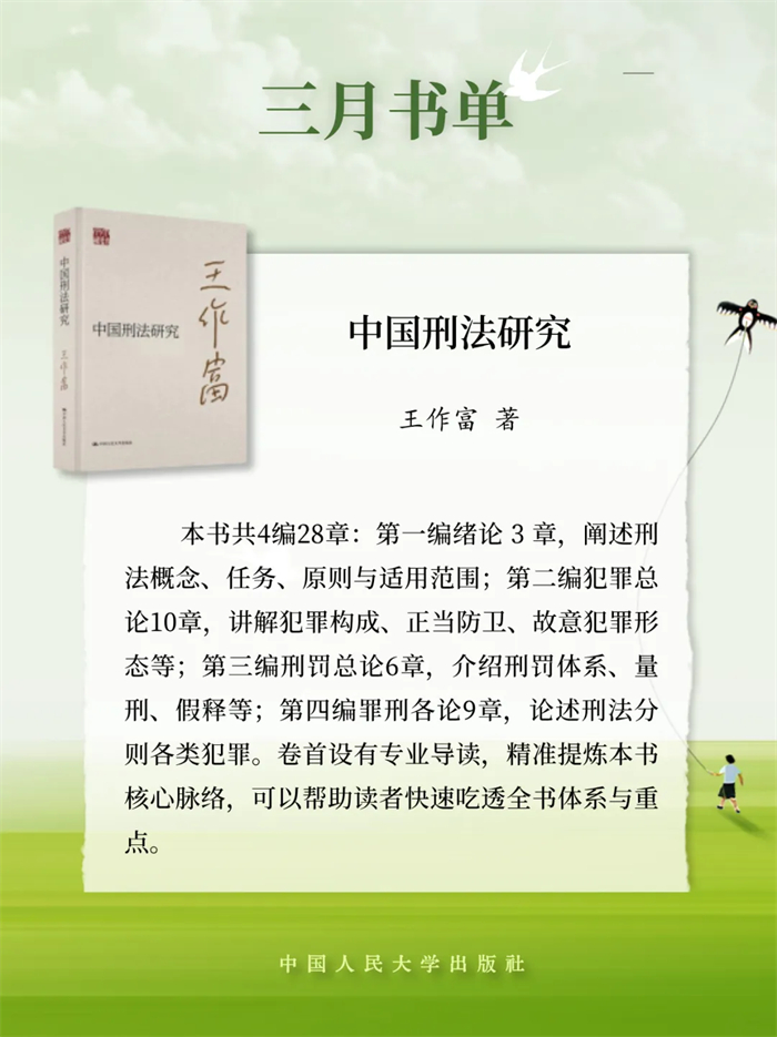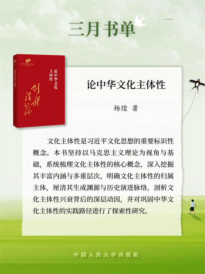 中国人民大学出版推荐2026年3月新书单,本书单包含17种图书,分别是:《让世界读懂中国》《论中华文化主体性》《现代化人民城市建设之路》《中国式现代化的天下担当:构建人类命运共同体》《建设社会主义现代化国家的量化标准》《加快发展现代化产业体系:中国的现状、问题与改革逻辑》《马克思“不惑之年”的思考》《中国经济改革发展理论探索(六卷本)》《新战略机遇:迈向2035的中国与世界》《低空经济十讲》《光阴似箭:从工业革命到信息革命》《需求溢出理论:扎根本土的公共管理学总体理论》《社会老年学》《时代精神的哲学反思》《中国刑法研究》《法的真谛》《党办的大学让党放心 人民的大学不负人民——中国人民大学校史上的特刊》。