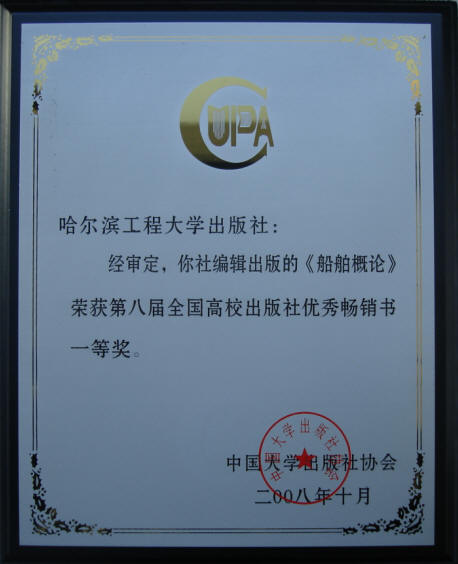 哈尔滨工程大学社《船舶概论》荣获第八届全国高校出版社优秀畅销书一等奖