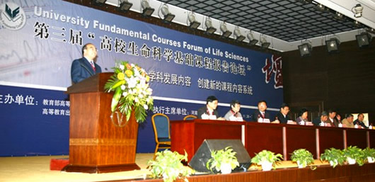 由高等教育出版社发起,教育部高等学校生物科学与工程教学指导委员会及有关高校共同举办的第三届“高校生命科学基础课程报告论坛”于2008年11月28日至30日在河南新乡隆重召开。 继前两届高校生命科学基础课程报告论坛成功举办之后,今年来自全国150余所高校的近400名代表相聚在河南新乡,两院院士、国家级教学名师、国家精品课程主持人、高校生命科学学院院长、知名教授和一线教师共聚一堂,围绕“生物学课程教学内容改革与实践——整合学科发展内容、创建新的课程内容系统”这一主题进行了深入的交流与研讨。 出席本届论坛开幕式的有教育部高等学校生物科学与工程教学指导委员会主任委员、中国科学院院士、中国科技大学施蕴渝教授,中国科学院院士、上海交通大学邓子新教授,河南师范大学校长焦留成教授,高等教育出版社张增顺总编辑、吴向副总编等。 大会开幕式由河南师范大学副校长徐存拴教授主持,河南师范大学焦留成校长、教育部高等学校生物科学与工程教学指导委员会主任委员施蕴渝院士及高等教育出版社张增顺总编辑分别致辞。其后,邓子新院士、施蕴渝院士、徐存拴教授、南京大学陈建群教授、南开大学卜文俊教授、兰州大学安黎哲教授、北京大学丁明孝教授、复旦大学乔守怡教授、华中农业大学郑用琏教授分别围绕生物学学科发展和技术进步对专业教育带来的影响、生物学课程体系的优化与课程教学内容的整合及重建、生物学教学方法改革与数字化教学资源建设、实践教学体系构建与教学模式探索等主题进行大会报告。 届论坛分5组进行分组报告与讨论,另有120余篇书面交流论文张贴展示。同时,本届论坛还特设“学院风采”展示区,促进了各高校生命科学学院之间在学院发展和学科建设等方面的交流,受到了参会院校的普遍好评。 在论坛期间,组委会设专场对本届论坛征集的和已建设完成的教学资源进行展示和评议,希望通过对教学资源的交流和分析,了解一线教师在教学资源建设与使用中存在的问题与需求,归纳和探讨优质教学资源的特征,以及数字化教学资源建设和应用模式。论坛中展出的数字化教学资源达32项,得到了老师们的高度关注与热烈参与,有近200名教师参与了对数字化教学资源的评议。 与会代表充分分享在改革探索和实践中积累的宝贵经验,大家在课程体系、教学内容、实验与实践教学、教学方法和教学手段改革以及教材与教学资源建设等方面有了更多新的认识和共识。 本届论坛筹备井然有序,内容精彩丰富,气氛热烈和谐,取得了圆满成功。论坛对推动高校生命科学基础课程改革,促进生命科学高素质人才培养起到了积极的作用。生命科学基础课程报告论坛已经成为广大教师及时了解生命科学教学改革信息和发展趋势的窗口,并作为教学研讨和交流的平台吸引广大教师持续关注和参与。 生命科学基础课程报告论坛组委会秘书处 生命科学与医学出版中心生命科学分社 2008年12月 来源:高等教育出版社2008.12.19