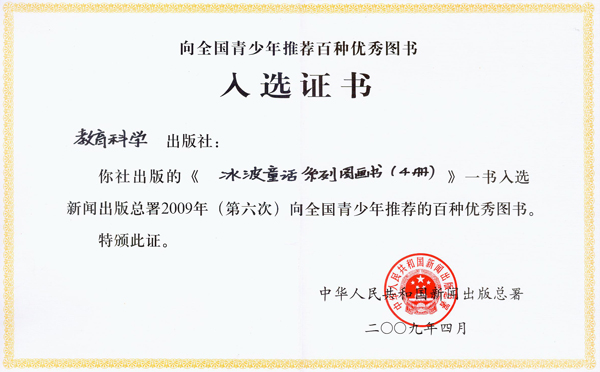 2009年4月16日,新闻出版总署2009年向全国青少年推荐百种优秀图书出版座谈会暨新闻发布会在京举行。教育科学出版社“冰波童话”系列图画书入选。