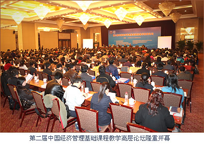2009年11月7日,第二届中国经济管理基础课程教学高层论坛在北京会议中心隆重开幕。本届论坛是由全国高等学校教学研究中心、全国高等学校教学研究会、教育部高等学校经济学学科教学指导委员会、工商管理类学科专业教学指导委员会、公共管理类学科专业教学指导委员会、管理科学与工程类学科专业教学指导委员会、电子商务专业教学指导委员会、物流类专业教学指导委员会与高等教育出版社联合主办,对外经济贸易大学承办。来自全国460余位经济管理类专家、学者参加了会议。