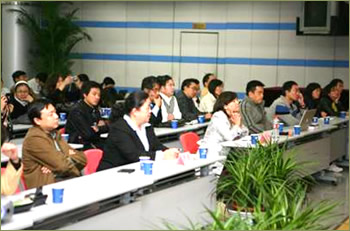 当天晚上,在社长助理尹洪的主持下,部分高职教师及行业企业专家针对报告内容进行了热烈讨论,更有教师展示了学校建设的虚拟现实方面的教学资源,与德国专家进行了深入的交流和沟通。大家普遍认为职业教育教学资源的建设不但要与教学结合,更要与行业企业结合,要把行业企业的典型任务、工艺体现在教学资源中,这既是重点也是难点。在与行业企业合作的基础上,虚拟现实技术在职业教育中的应用为学生技能的训练和培养提供了一个非常好的途径,大家表示将依托国家示范性高职院校课程开发与教学资源建设协作组,认真进行这方面的研究,开发出符合中国职业教育特点的基于虚拟技术的技能培养类的教学资源。国家示范性高职院校课程开发与教学资源建设协作组是高职中心、新世纪教学研究所在教育部的支持下,联合众多高职院校、行业企业等单位,于2007年成立。