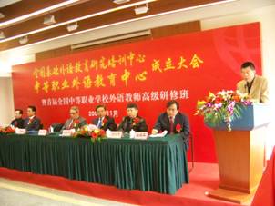 全国中等职业外语教育中心成立大会于2009年11月7日在外研社国际会议中心召开,来自全国各地的近200位外语教育专家、中职外语教研员、中等职业学校外语骨干教师参加了中心成立大会暨首届全国中等职业学校外语教师高级研修班。