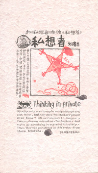 《私想着》黑乎乎的,粗犷、坚硬,纸质黄厚,带着刀痕,黑土地上的汉子也。《私想者》毛茸茸的,颜色白嫩,修长、爽快,点缀了些许大自然的色彩,东北大姑娘也。书是要翻开来看的,翻开,便解开了黑色的衣襟,敞开白色的胸怀。伟人思想是沉重的大山,遥远而高耸,众生们只能仰望。凡人低头过小日子,平视每一天,喜与悲、荣与辱、爱与恨,淡淡地、深深地印在纸上,刻在木板上。