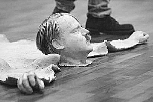 以色列激进艺术家展出的硅胶希特勒头像。