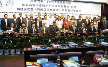 对外经济贸易大学国际商务汉语教学与资源开发基地(北京)揭牌仪式暨《商务汉语全球通》系列教材首发仪式于5月19日上午在对外经济贸易大学隆重举行,我社刘援副社长出席并致辞。教育部语言文字应用管理司王登峰司长、国家汉办马箭飞副主任、胡志平副主任、对外经济贸易大学王玲书记、施建军校长及北京市教委等领导,美国、法国、加拿大、俄罗斯、希腊、墨西哥等驻华使领馆大使代表出席了此次首发仪式,新华通讯社、北京电视台、中国教育电视台、北京青年报等十余家媒体也参加了本次活动,并进行了相关报道。