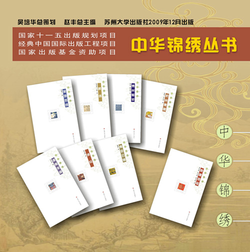 “中华锦绣丛书”包括《吴地苏绣》《南京云锦》《浙南夹缬》《新疆地毯》《杭州像景》《贵州蜡染》《缂丝》《顾绣》等8册,共106万字,800余幅图片。丛书以列入人类非物质文化遗产的地方性染织、刺绣产品为主,分别综述该类产品的历史沿革、品种的主要类别、传统生产技术、技术风格以及在当代的创新发展。其中有普通人所熟知的染织产品,也有部分已鲜为人知、濒临失传的宝贵文化遗产。丛书向世人生动全面地展示了中华优秀锦绣艺术品的精湛技艺和绚烂历史,是对中华锦绣文化和艺术品种的抢救式挖掘和梳理的重要成果,对保护和弘扬中华优秀传统文化尤其是我国部分濒临失传的人类非物质文化遗产的代表性纺织物传统技艺的挖掘与整理起到积极的推动作用。