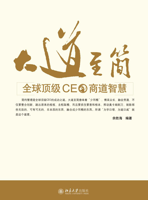 这是一个需要商界领袖,不断产生商界领袖,也是一个崇拜商界领袖的时代。韦尔奇、比尔盖茨、克罗克、福特、稻盛和夫、李嘉诚、松下幸之助、本田宗一郎、乔布斯、任正非等都是世界上公认的商界领袖和经营大师,是企业家、经理人学习的标杆。他们涵盖了IT、汽车、机械、电器、快餐、金融、电信、航空、陶瓷等许多领域,他们的经营管理思想和方法被誉为“经营管理圣经”、决胜商场的“智慧宝典”,让世界上所有梦想成功的商业人士都会从中获得启迪和教益。 全球经济一体化时代,企业面对的机遇多了,面临的竞争也大了。商务部统计结果表明,中国企业的平均寿命只有五年,品牌的生命力平均不足两年,在21世纪新经济条件下,身陷全球化经济浪潮的中国企业将面临更加严峻的考验。中国企业经营者们该何去何从?中国企业如何走出一条属于自己的发展道路? 企业要发展,管理是关键。简约管理是全球顶级CEO的成功之道。大道至简意味者“少而精”,博采众长,融会贯通,不仅要整合创新,跳出原来的框框,去粗取精,而且要抓住要害和根本,挥动奥卡姆剃刀,剔除那些无效的、可有可无的、非本质的东西,融合成少而精的东西。所谓“为学日增,为道日减”就是这个道理。 简约管理不仅仅是一种管理方法,更重要的是一种思维方式。这种思维方式带给大家的既是思维的革命,也是管理的革命,可以让我们从繁琐和复杂的工作和生活中解脱出来。 “管得越少,成效越好”这是“全球第一CEO”杰克·韦尔奇的一句名言。这是一种境界,是一种依托企业谋略、企业文化而建立的至高无上的经营平台。 韦尔奇说:“事必躬亲,只会累坏自己。习惯于相信自己,放心不下他人,经常粗鲁地干预别人的工作过程,这是许多管理者的通病。问题是,这会形成一个怪圈:上司喜欢从头管到尾,越管越变得事必躬亲,独断专行,疑神疑鬼;同时,部下就越来越束手束脚,养成依赖,封闭的习惯,把主动性和创造性丢得一干二净。”所以,我们作为管理者不必事必躬亲,要信任部下,学会放权。让你的部下充分发挥其主动性和创造性。 简约管理的核心竞争力在于:管用、好用、一用就有效。企业管理所要解决的根本问题是有效,即有效直至高效地解决问题。 因此,我们要在简约管理思维的指导下,利用科学的方法,将工作主题核心以外的枝节因素尽可能地剔除掉,使复杂的问题简单化,简单的问题条理化,条理化的问题更简化。从而简化人际关系,优化工作流程,提高工作效率,创造更佳效益的一种高效管理方法。在简约中享受工作、享受生活。 许多民企老板都有过这样的感叹:人才难找,班子难带,员工难管,听话的不能干,能干的不听话。一言以蔽之,就是招不到人、管不好人、用不好人、留不住人。 在当今市场竞争异常激烈的环境下,如何降低人才流失率成为我国众多企业所面临的一个重要问题。员工的流失不仅直接导致企业人力资源成本升高,还将造成企业的技术和经验流失,给企业带来不可估量的损失。 企业经营的实质是经营人心。老板在经营企业的同时,要象经营大师们一样“经营员工”,因为人是第一生产要素。维持现有队伍,发挥大家的积极性,增强凝聚力是企业人力成本最低的办法。 留住员工,必须提高企业的吸引力,而“钱”不是惟一吸引力。因为,员工的需求是多样化的。要实实在在地做到“以人为本”,用感情留人,用企业文化留人,让他们感受到企业大家庭的温暖,增进员工对企业的归宿感、认同感;要建立合理有效的激励机制和给员工必要的职业生涯规划,充分发挥其潜能,提高工作业绩,以使员工觉得自己有发展前途,从而乐意长久地为企业做出贡献。这个道理中国企业家都懂,遗憾的是多数没有把这些工作落到实处,“以人为本”成为一种时髦的口号。 韦尔奇说:“CEO的首要任务是一手抓种子,一手拿化肥和水,让种子成长。让你的公司发展,让你身边的人不断发展和创新,而不是控制他们。”他还指出:“中国的企业家在激励调动员工的积极性上不是很出色。很多管理者更懂得服从上司,但是没有调动别人的积极性。” 美国钢铁大王卡内基曾经讲过:“如果拿走我的全部厂房设备、资金,只要保留我的原班人马,几年以后,我仍将成为钢铁大王。”可见,一支训练有素的员工队伍,对企业是至关重要的。 目前,中国企业真正的挑战在于国际化规则与世界级水平的运营。因为中国企业与世界卓越企业存在的差距是整体性的、全方位的。像华为、海尔、联想这样的国际化企业很少。要想真正把握消费者,就得怀着一颗敬畏之心,像追求真理一样,不断地了解他们,琢磨他们,服务他们,最大限度地满是消费者的需求。像雷蒙德·克罗克和本田宗一郎一样时刻“把自己摆在顾客的位置上”,“让用户感到满足和喜悦”,像任正非一样“以客户为中心,为用户创造价值”。 2010年,苹果取代谷歌成为全球最具价值的品牌。作为苹果的CEO,乔布斯的可贵之处在于非常尊重用户的需求,当他感觉自己产品已经做到尽善尽美的时候,总是对自己的一千条创意说“不”。他时刻关注细节,无论是在产品设计、网页导航,还是在产品演示上都要进行不断创新和简化,把每一个细节和技术做到了极致,让产品尽善尽美,让用户体验达到极致。 经常有人问我,中国为什缺少世界级企业?我们究竟落后在哪里?其