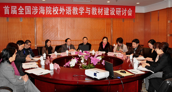2012年1月13日,由中国海洋大学外国语学院、研究生教育中心和中国海洋大学出版社共同发起并主办的首届全国涉海院校研究生外语教学与教材建设研讨会在海大学术交流中心举行。来自厦门大学、中国海洋大学、上海海洋大学、大连海洋大学、广东海洋大学、浙江海洋学院等六所涉海院校外国语学院负责人和教师代表以及中国海洋大学出版社参与涉海院校研究生英语教材编写的代表共计20人参加了为期一天的研讨会。