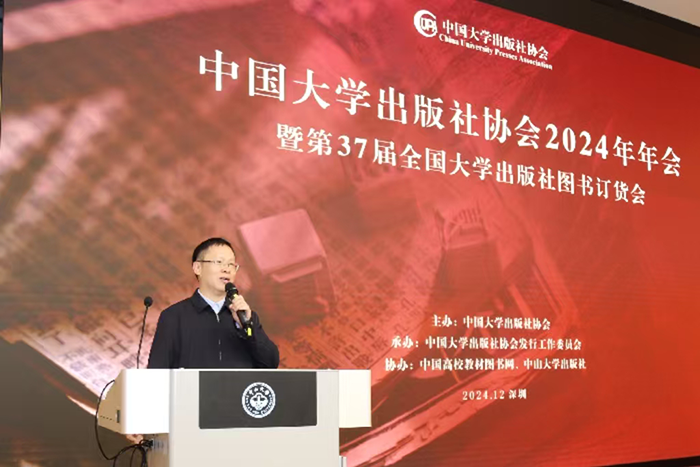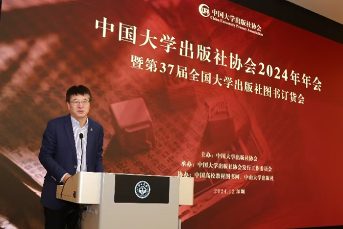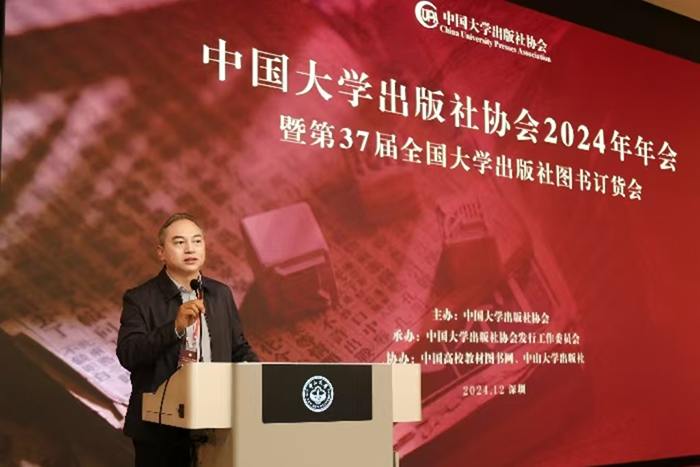 12月19日上午,大学出版主论坛在中山大学深圳校区图书馆举办。中国大学出版社协会理事长、中国人民大学出版社党委书记、董事长李永强作《学习习近平文化思想 推进大学出版社高质量发展》主题报告,中山大学国际金融学院院长黄新飞教授作《贯彻落实二十届三中全会精神 一体化推进粤港澳大湾区建设》主题报告。同方知网数字出版中心副总经理龚婷,辽宁向日葵数字技术股份公司CTO、教育研究院院长李广胜作专题演讲,中国大学出版社协会副理事长、中山大学出版社社长王天琪主持论坛。