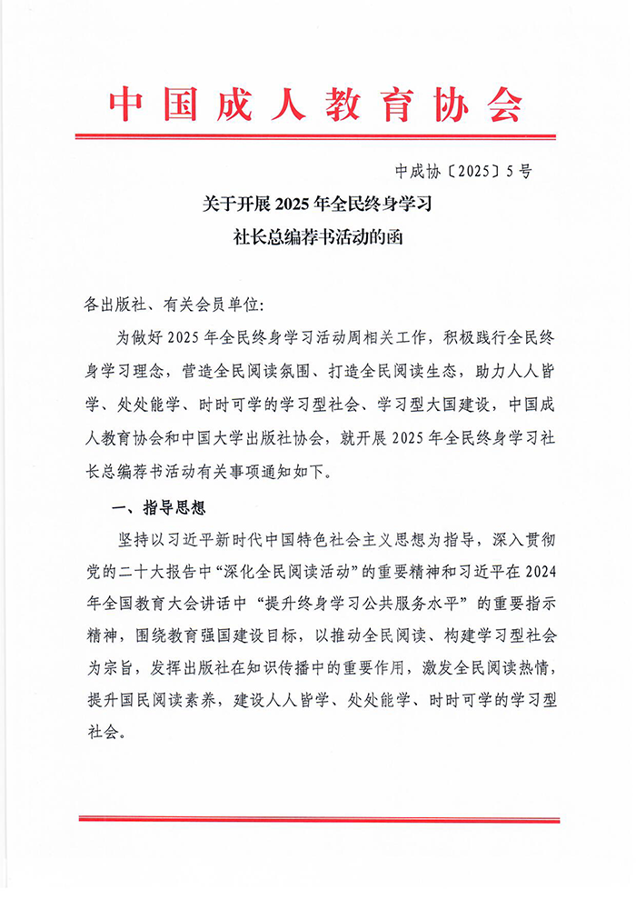 关于开展2025年全民终身学习社长总编荐书活动的函 - 通知公告 - 中国高校教材图书网
