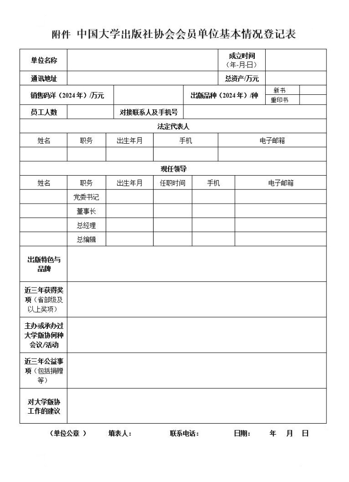 附件:中国大学出版社协会会员单位基本情况登记表下载