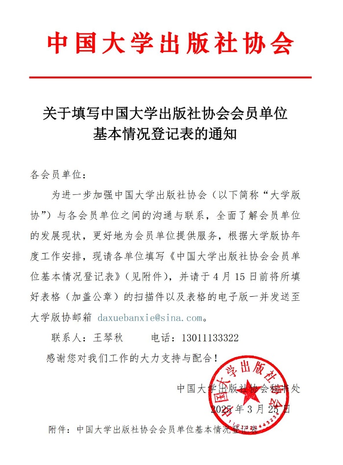关于填写中国大学出版社协会会员单位基本情况登记表的通知 - 通知公告 - 中国高校教材图书网