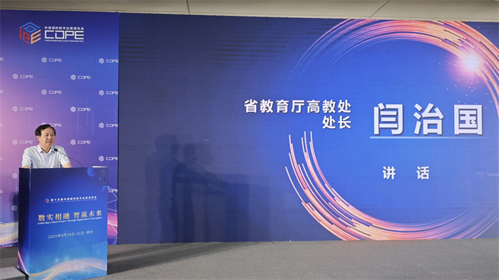 杨萌芽在致辞中对莅临现场的各位领导、嘉宾和参会代表表示热烈欢迎。随后,他介绍了河南大学发展历程和教育数字化建设方面的探索。关于数字教材建设,他提出:一要标准共建,加快研制数字教材内容、技术、评价、服务等系列标准,让优质资源可复制、可推广,让“有章可循”成为行业共识;二要资源共享,数字教材建设需要高校、出版社、技术企业、政府部门多元联动,完善“政产学研用金”协同机制,实现优质资源跨区域、跨学科共建共享;三要生态共育,探索人工智能、大数据、XR等前沿技术在教材中的深度应用,服务于“以学生为中心”的教学改革,让教材真正“会思考、会对话、会服务”,打造教育数字化“中原范式”。