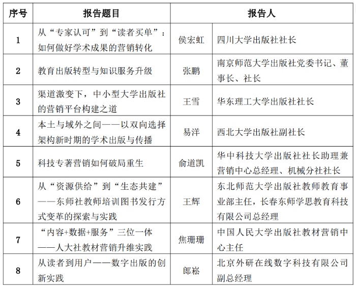 会议将邀请有关领导专家莅临指导,组织大学出版社代表剖析实战案例、分享工作经验,开展讨论交流(主要报告内容安排见下表)