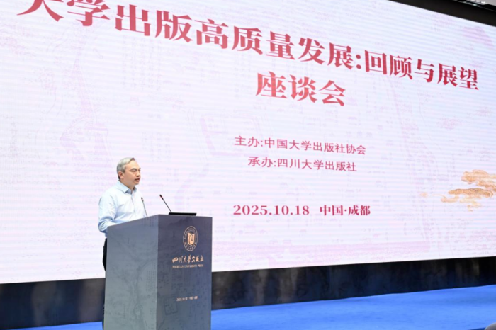 2025年10月18日,由中国大学出版社协会主办、四川大学出版社承办的“大学出版高质量发展:回顾与展望”座谈会在2025年天府书展四川大学分会场举行。今年是中国大学出版社协会首次组团参加天府书展,并在书展主会场和四川大学分会场举办了全国大学出版社精品图书展,线上书展在中国高校教材图书网同步举办。来自中国出版协会、中国大学出版社协会、中共四川省委宣传部、四川新华出版发行集团和全国70余家大学出版社的100余位嘉宾和代表齐聚蓉城,共同回顾大学出版事业发展成就,交流实践经验,凝聚发展共识,协力擘画新时代大学出版高质量发展新蓝图。