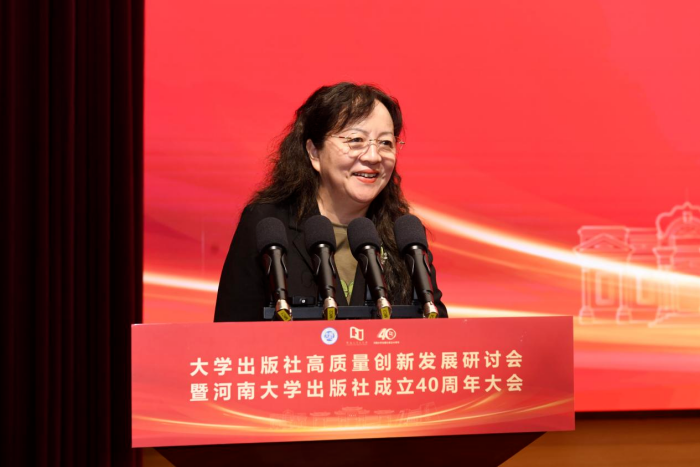 平萍在致辞中肯定河大社四十年在服务大局、扛稳主业、数字创新方面的成果。强调出版社要深入学习贯彻习近平文化思想与总书记河南考察重要讲话精神,强化政治引领,打造学术品牌,深化融合发展,创新培养机制,依托出版学院打造全国学科共建“河南样板”。