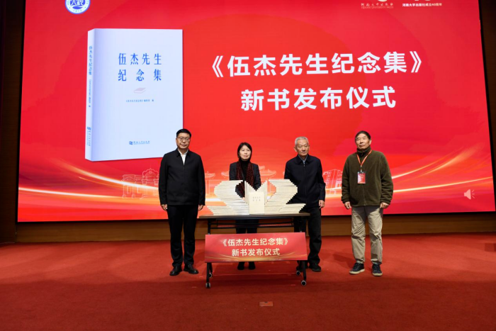 邬书林、平萍、杨萌芽、马小泉为《伍杰先生纪念集》揭幕