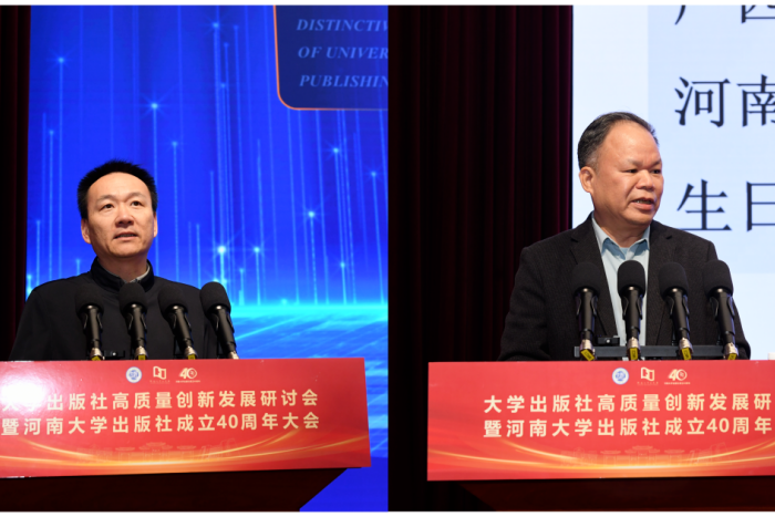 恰逢河南大学出版社成立四十周年,2025年10月23日,大学出版社高质量创新发展研讨会暨全国地方综合大学出版社2025年会召开。会议由中国大学出版社协会主办,河南大学出版社承办。中国出版协会理事长邬书林,中国大学出版社协会理事长、中国人民大学出版社党委书记、董事长李永强,河南省委宣传部副部长、省政府新闻办主任平萍,河南省教育厅党组成员、副厅长吕冰,中原出版传媒集团党委副书记、总经理、副董事长林疆燕,河南大学党委副书记杨萌芽、副校长乔梁等领导嘉宾出席大会,全国各高校出版社的领导,河南大学出版社优秀合作伙伴,河南大学出版社选题策划专家,多家新闻媒体嘉宾,河南大学部处院系相关负责人以及河南大学出版社离退休职工代表和全体职工等200余人参会。