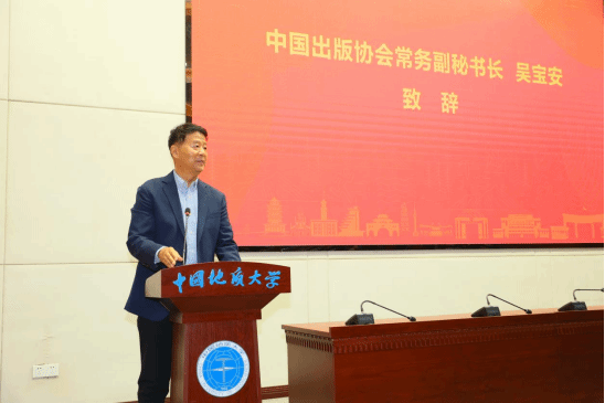 吴宝安在致辞中对地大出版社依托学科专业优势、服务行业发展40年取得的成就给予充分肯定。他强调大学出版社是出版业的重要主体,发挥着举足轻重的关键作用,开展行业特色大学出版社高质量创新发展研讨,十分必要,意义重大。他分析了出版业发展面临的内外形势,并对地大出版社发展提出三点指导意见:要全面加强党的领导,守牢社会主义文化阵地;要持续提升专业水平,筑牢发展之基;要广泛开展交流合作,构建良好行业生态。他希望各出版社、大学社一道,坚守初心,奋发图强,为建设社会主义教育强国、科技强国、文化强国作出新的更大的贡献。