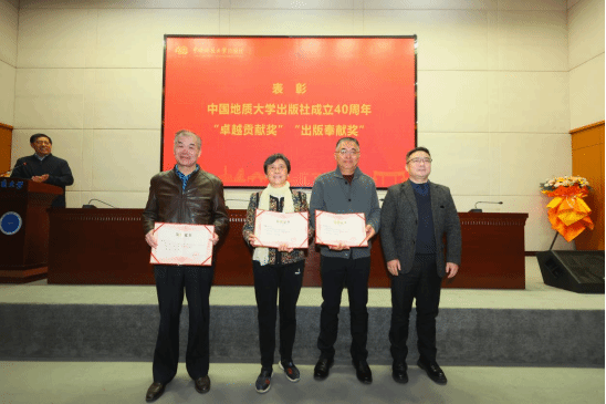 中国地质大学(武汉)副校长王力哲为出版奉献奖获得者颁奖