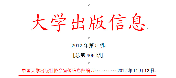 1.在教育部、新闻出版总署的指导下,按照十八大精神,积极探索在新形势下大学出版社的改革与发展。