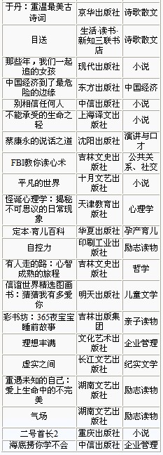 数据来源: 1.实体书店、当当网、京东商城网上书店图书畅销榜。 2.新华书店总店信息中心成品数据中,2012年出版图书品种。