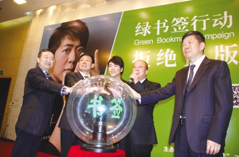 4月1日,全国“扫黄打非”办公室、国家版权局在北京共同启动了“绿书签行动2013”,宣布从4月1日至26日世界知识产权日期间开展系列公益宣传活动,提高公众保护知识产权意识。我国著名青年钢琴家郎朗受邀担任绿书签形象大使,并发出“拒绝盗版,拥抱梦想”的倡议。