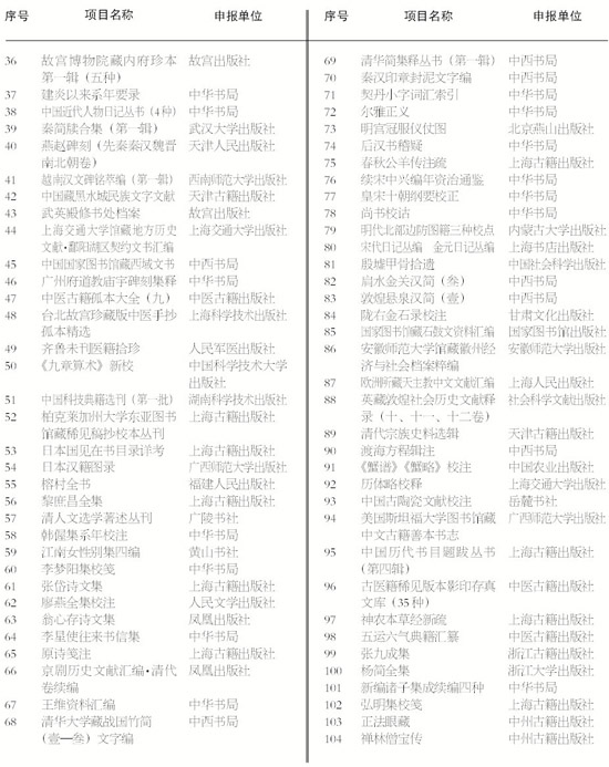 国家新闻出版广电总局(全国古籍整理出版规划领导小组)依据《古籍整理出版资助评审办法》,经过出版单位申报、材料审核、评审委员会评审等程序,确定了2013年度古籍整理出版资助项目共104个。为充分体现公开、公正、公平的原则,现将资助项目名单予以公示,接受社会监督。