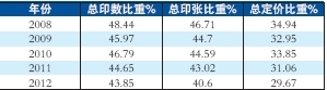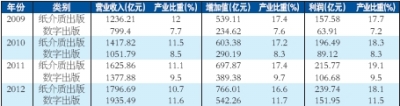 表5:2009~2012年全国纸介质出版和数字出版比较