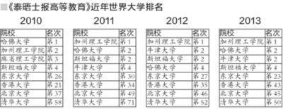 10月2日,英国《泰晤士报高等教育》公布该报评出的2013年世界大学排行榜,北大、清华排名进入前50。