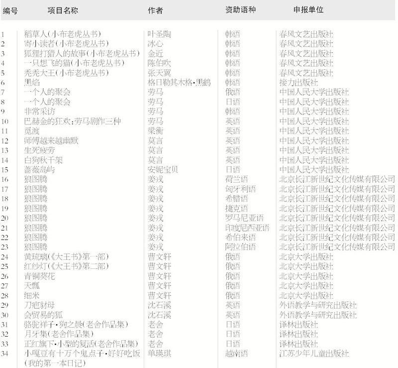 国家新闻出版广电总局“经典中国国际出版工程”办公室自2013年6月正式启动“作家版”项目申报和评审工作。经过前期审核和评审委员会评审,确定了国内外共82个出版项目入围,现将名单予以公示,接受社会监督。