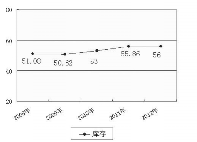 以图书品种增长拉动销售增长已经成为一个不争的事实,令人欣慰的是,品种的持续增长并没有带来库存的同幅度上升,2012年,全国新华书店系统、出版社自办发行单位年末库存56.00亿册(张、份、盒)、841.88亿元,与上年相比数量增长0.25%,金额增长4.70%。2011年,全国库存数量为55.86亿册(张、份、盒)、804.05亿元,同比数量增长5.39%,金额增长8.98%。从近5年来看,全国新华书店系统、出版社自办发行单位的年末库存一直保持在50亿册(张、份、盒)以上,增长放缓,定价总金额从672.45亿元增长到841.88亿元(见图2)。