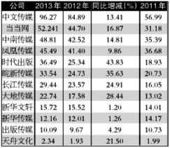表1:上市书企营业收入排行榜(单位:亿元)