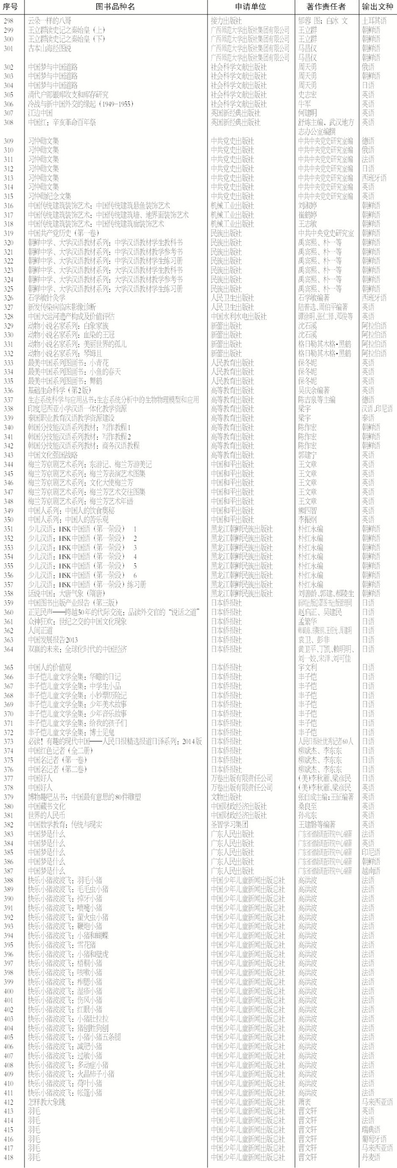 2014年“经典中国国际出版工程”资助出版项目公示名单(418种)