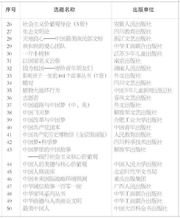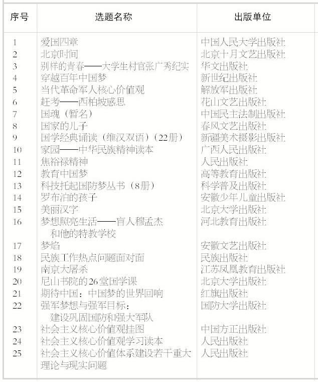 培育和践行社会主义核心价值观主题出版重点选题(图书选题50种)