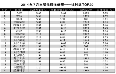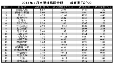 2014年7月出版社份额排行榜、排名升幅榜 - 业界观察 - 中国高校教材图书网