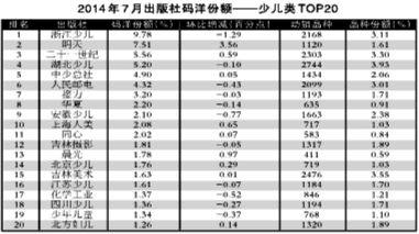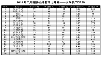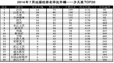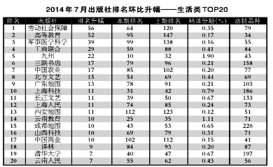 2014年7月出版社份额排行榜、排名升幅榜