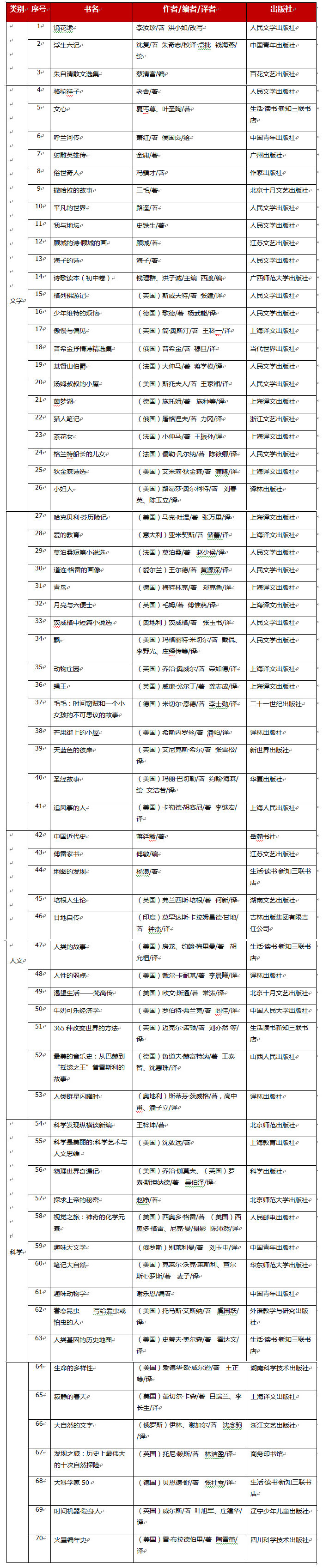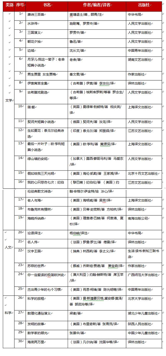 2014年版中国中学生基础阅读书目(初中书目) - 出版新闻 - 中国高校教材图书网