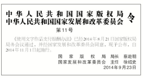 第十七条 本办法自2014年11月1日起施行。国家版权局1999年4月5日发布的《出版文字作品报酬规定》同时废止。