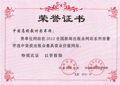 3.2012年中国高校教材图书网荣获 “最具商业价值网站”